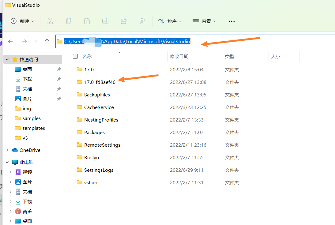 打开电脑的 运行 并输入 %AppData%,之后进入 C:\Users\你的电脑用户名\AppData\Local\Microsoft\VisualStudio