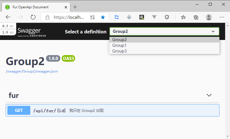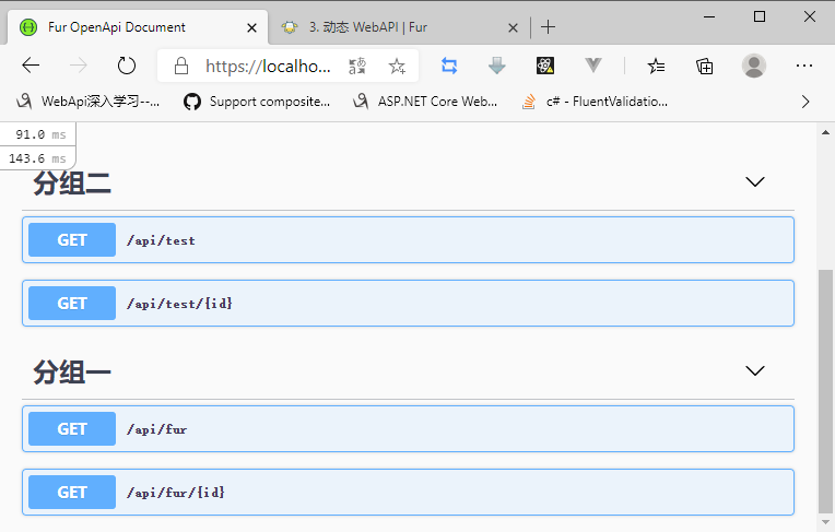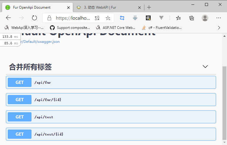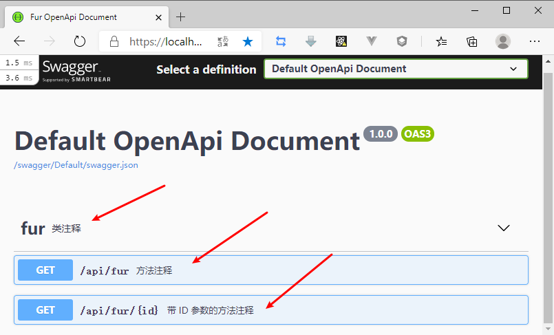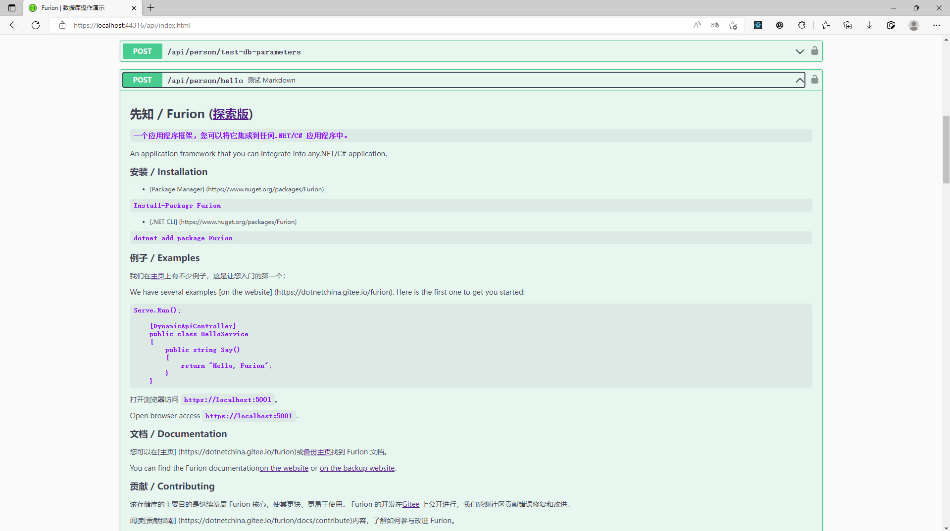 Furion 框架中,默认 规范化文档 地址为 /api 目录,支持自定义配置
